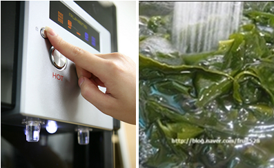 이렇게 정수된 온수를 받아서 가스렌지에 올려 놓으면 5분도