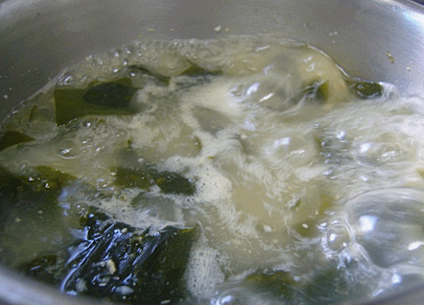 요리 재료는 미역,연두부,된장,정수된 물,마늘