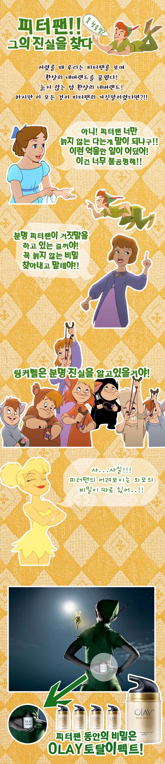 피터팬이 늙지 않는 이유가 올레이 화장품 때문에 동안으로 보인다는 광고였는데요,ㅋㅋㅋ
