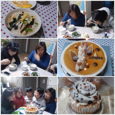 오전부터 잔치국수의 육수 만들고, 또 파리바게트 가서 3만원상당의 케익과