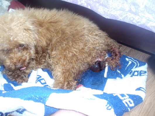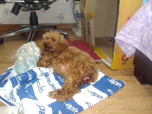 잠자다가 아파하는 소리에 눈을 떠..집을 보니 강아지 한마리가 막에 쌓인채 있고..