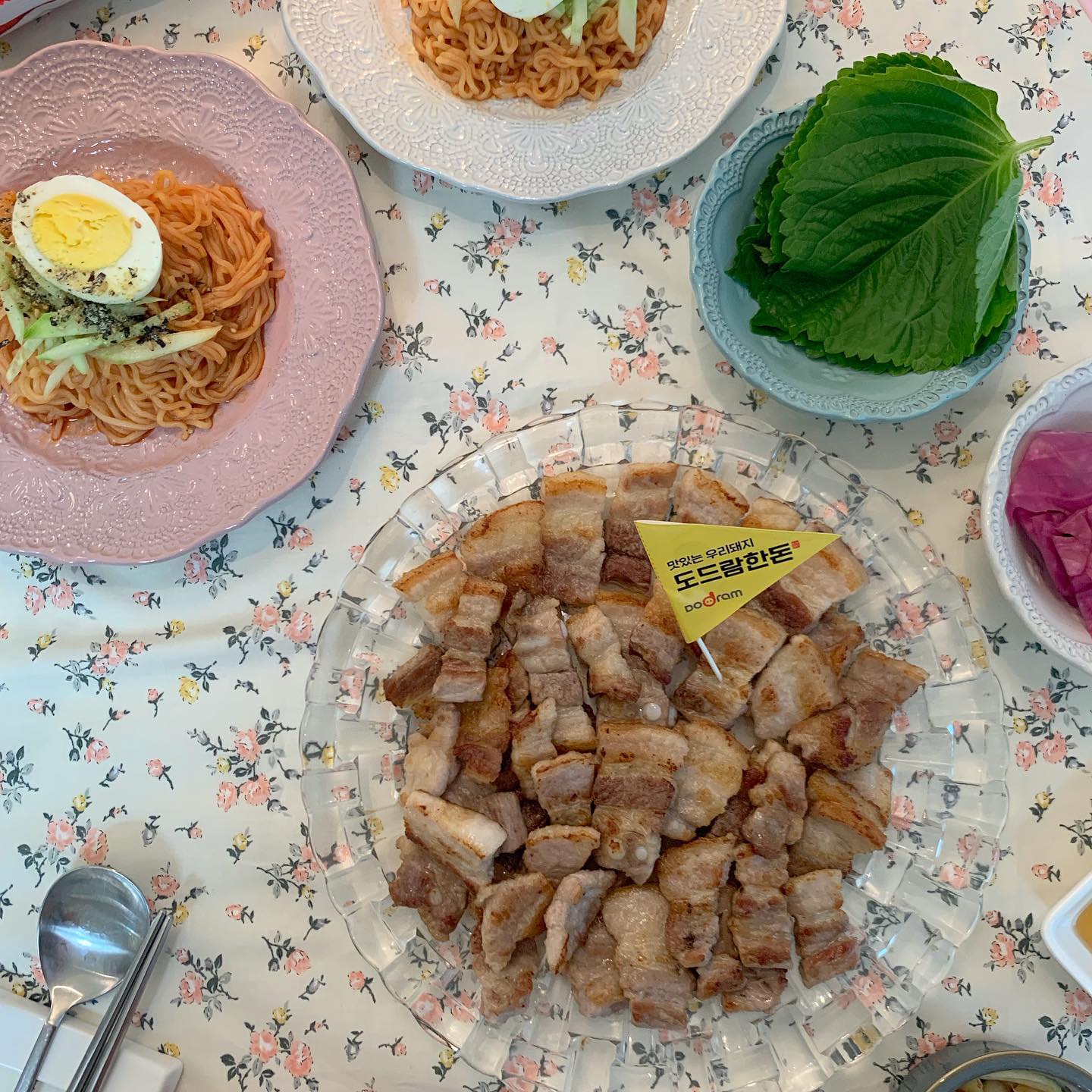 그래도한돈도드람삼겹살에새로나온진비빔면말아먹으니집에서홈캠핑느낌내보았어요.