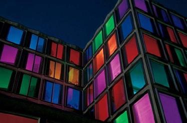 각가지 형광 색들의 캔디컬러로 단장한 세미라미스 호텔은